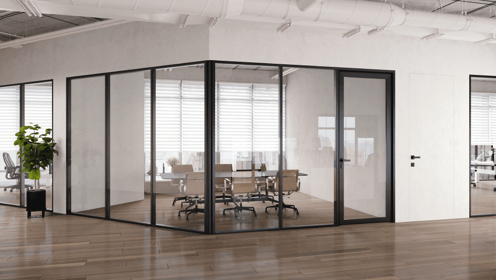 Glass and aluminium partitions have become an integral part of every newly built administrative building. In order to meet your needs in building spacious and cosy work spaces, we at Glawall can offer a number of prefabricated glass partition system types that can help attain visibility or privacy of your space.